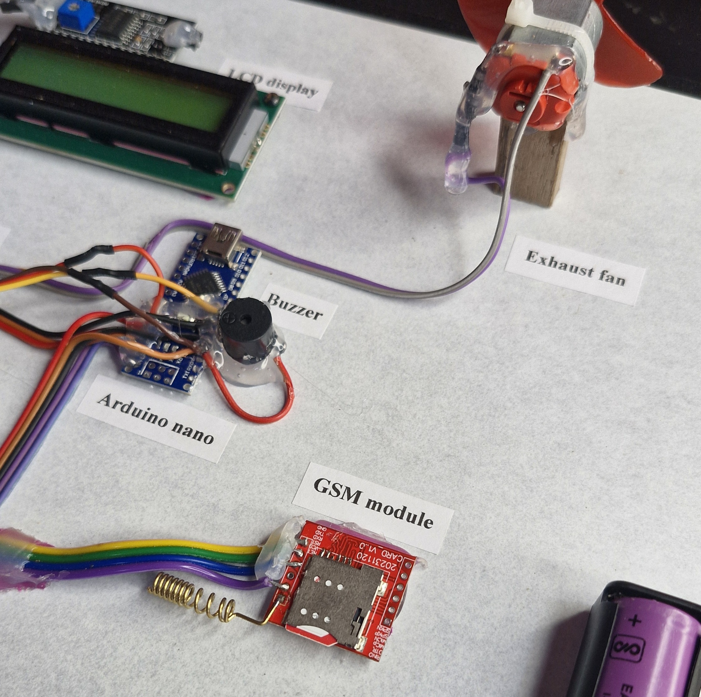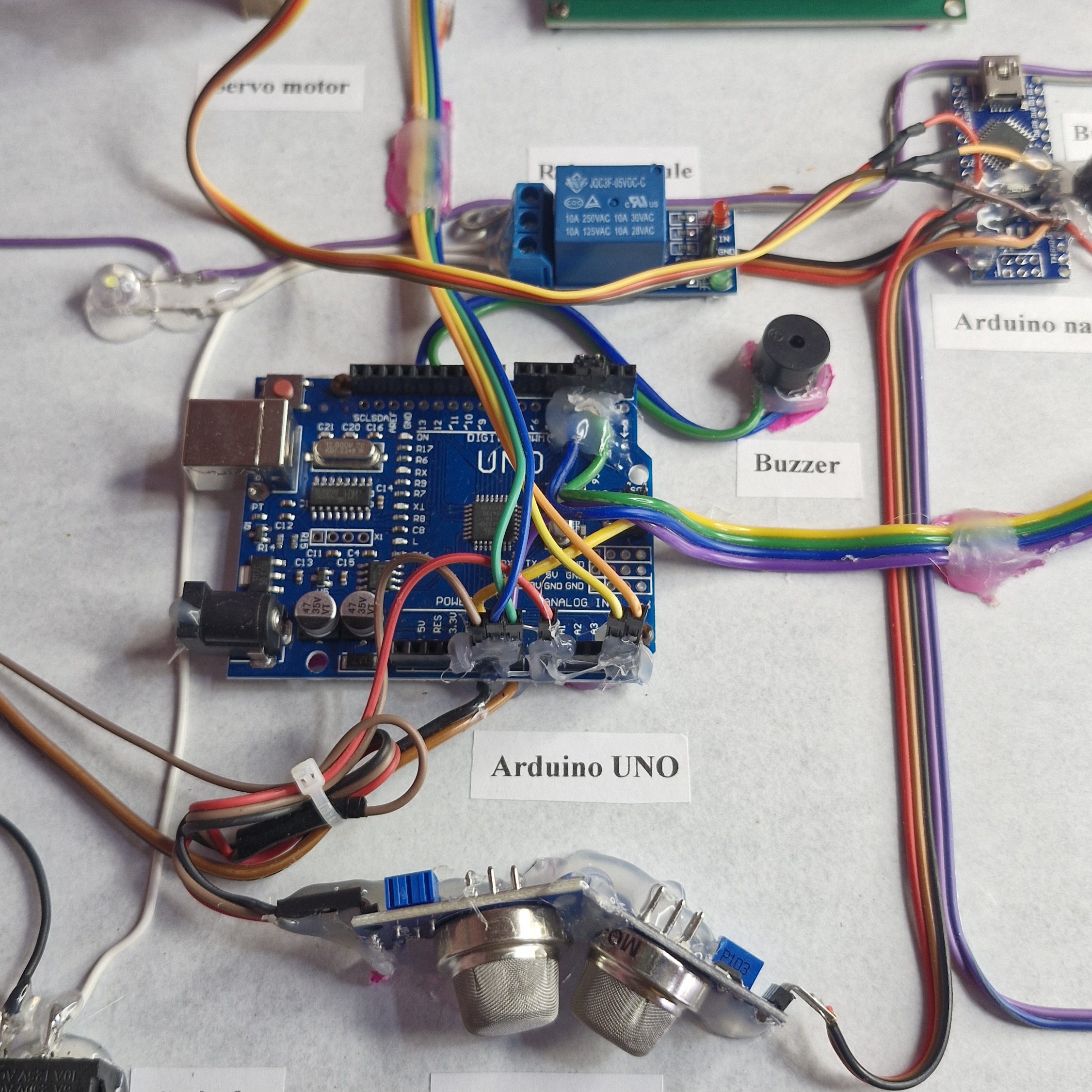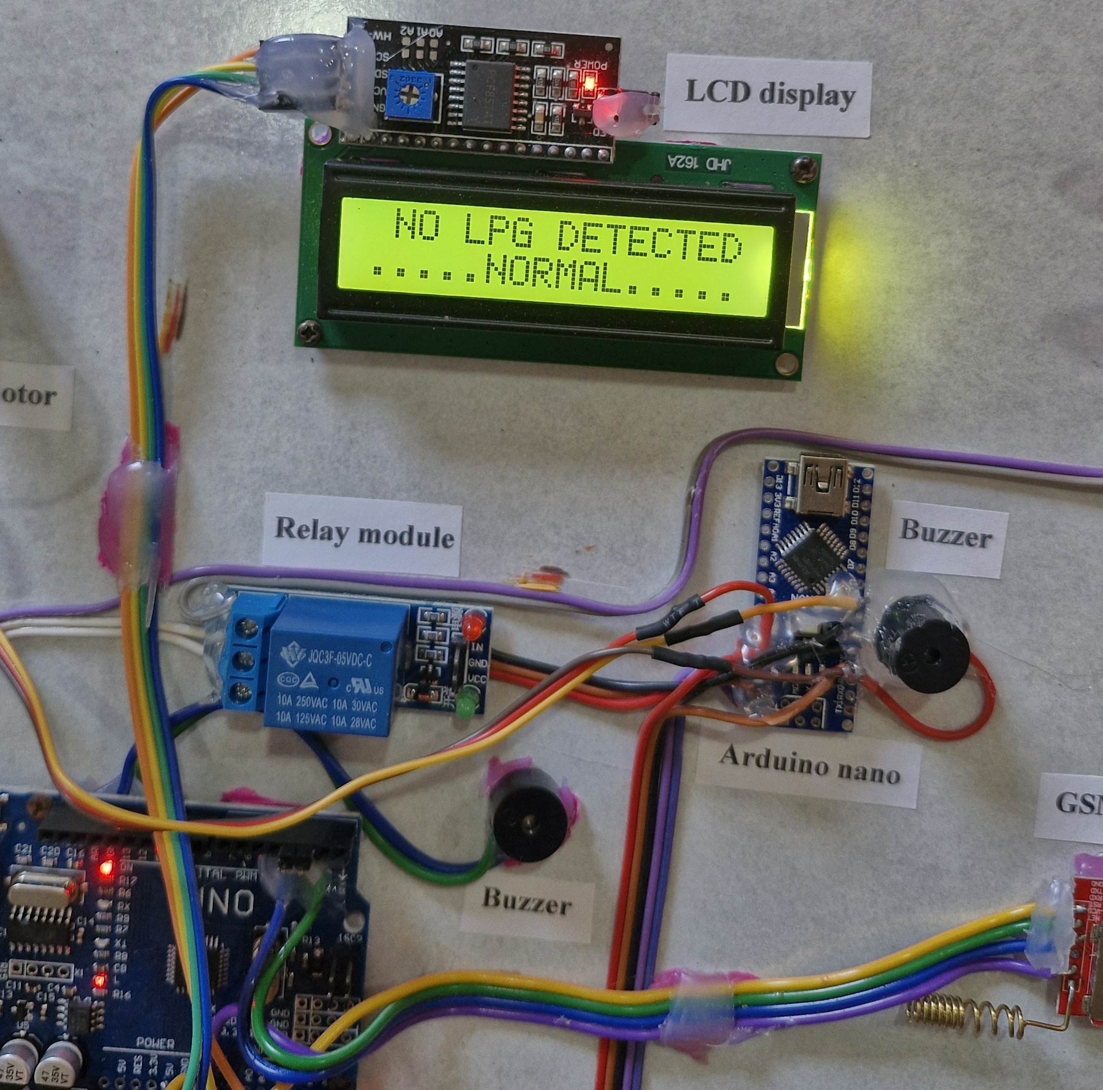 Gas leakage detection with sms and call alert , lights off and regulator off and exhaust fan on