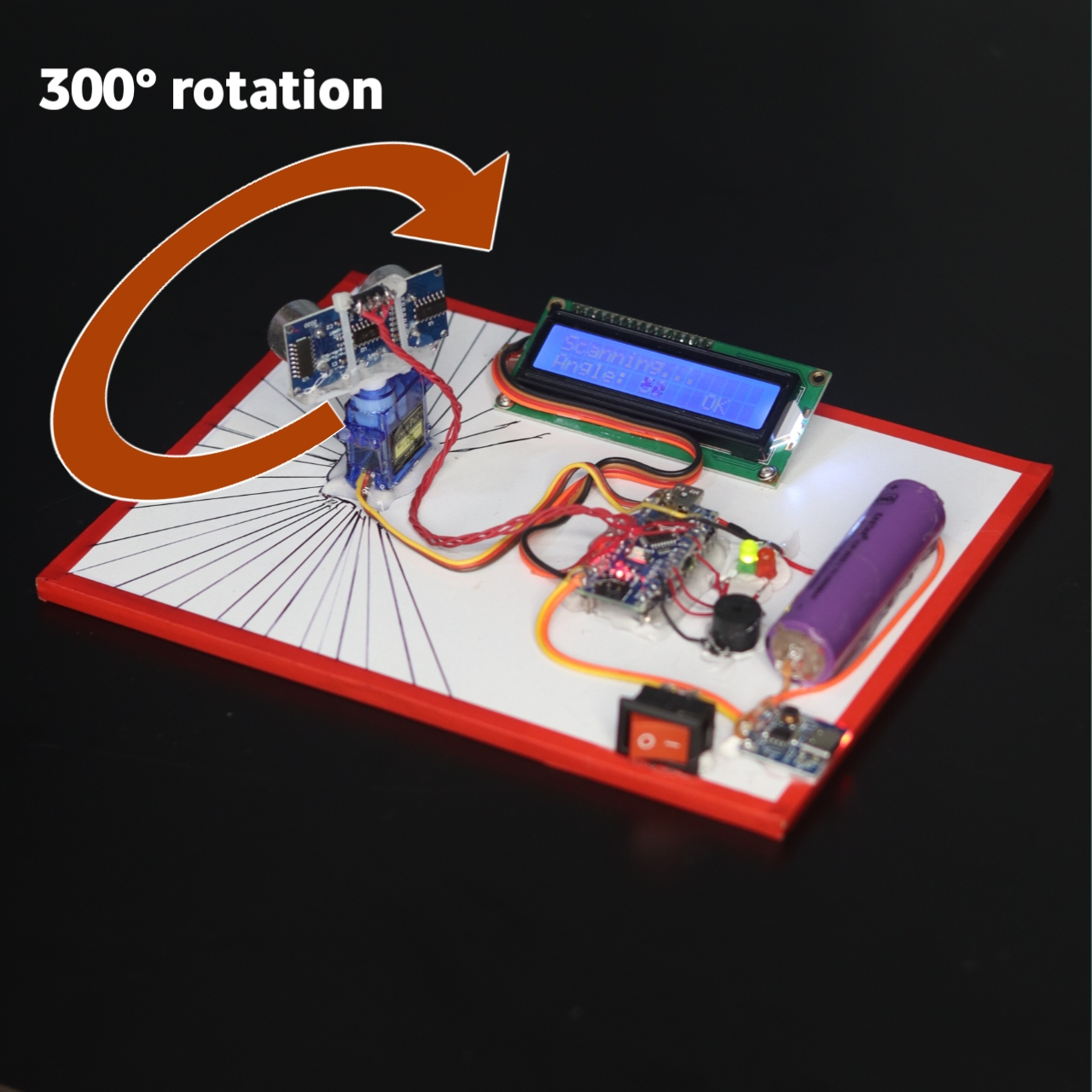 * Real-time Data: The I2C LCD Display shows the exact distance of the object and the current angle of the scan in real-time.