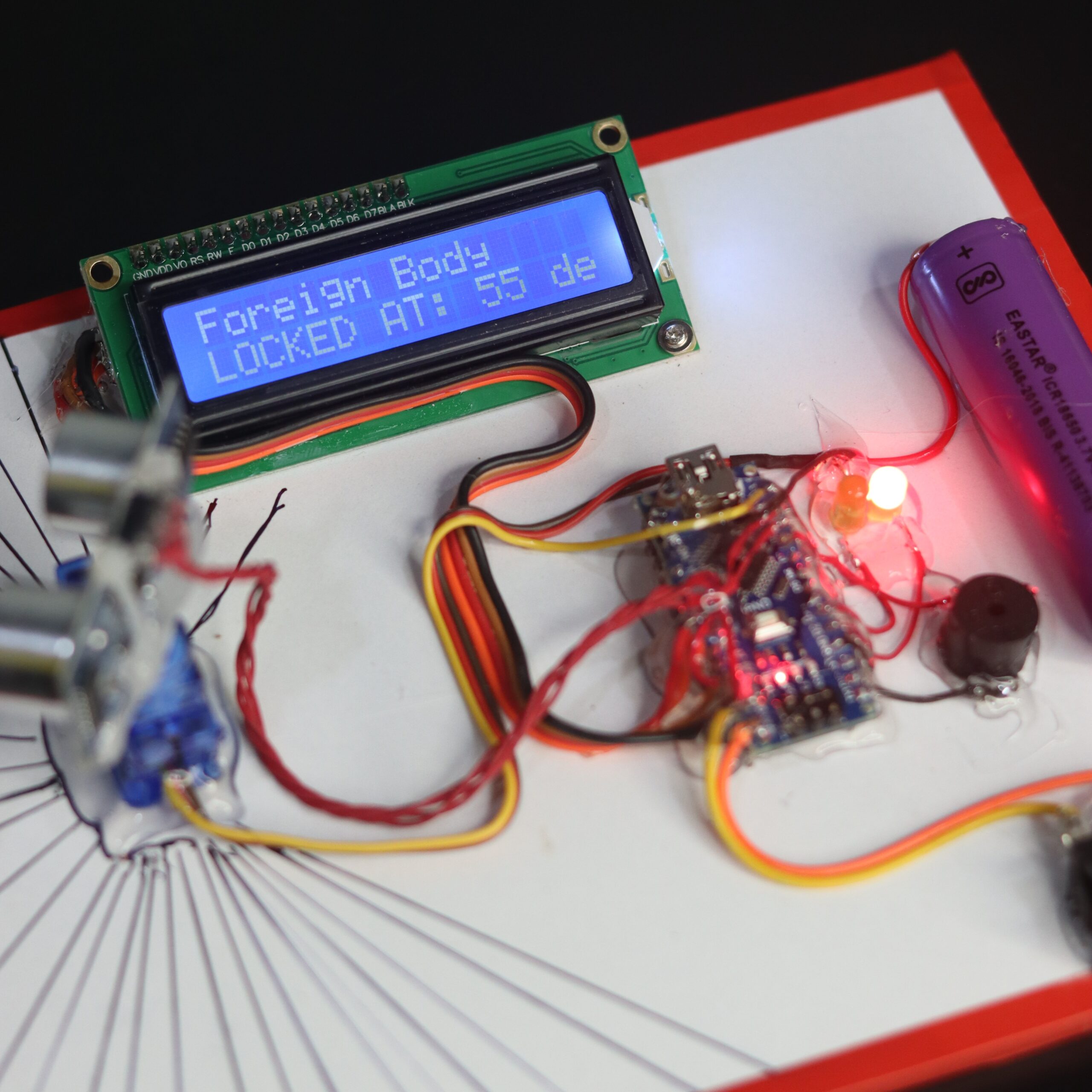 This project is an Automated Radar Prototype designed for perimeter security and obstacle mapping. It mimics the behavior of military radar by continuously scanning a 300-degree field of view to detect foreign objects or “intruders” within a specific range.